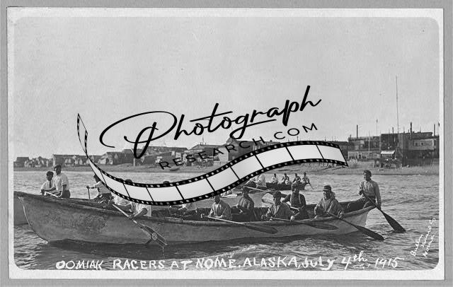 Oomiak Racers,Nome,Alaska,AK,July 1915,Racing,Waterfront,Boat,Eskimo