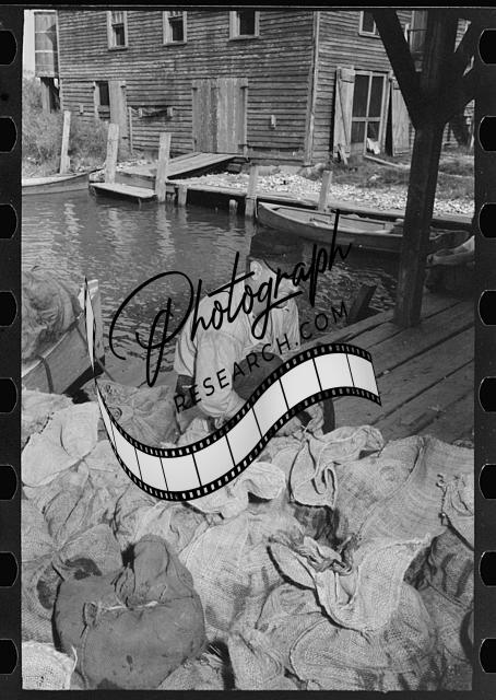 Tying sacks of oysters,Olga,Louisiana,LA,Farm Security Administration,FSA 1