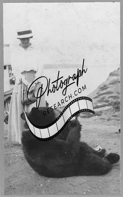 Bear drinking from bottle,Woman Watching,Yukon River,Alaska,AK,1900-1916