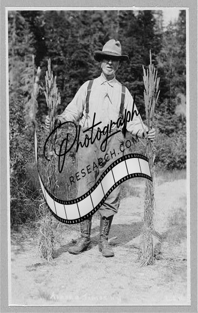 Mr. Johnson holding stalks of timothy grass,Alaska,AK,United States,1916