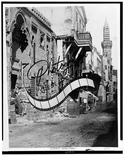 Cairo,Street view,buildings,dwellings,balconies,stonework,roads,Egypt,1860