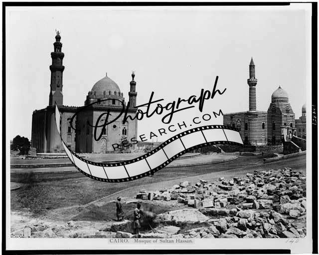 Cairo,Mosque,Sultan Hassan,religious buildings,spires,dome,Egypt,P Bergheim,1860