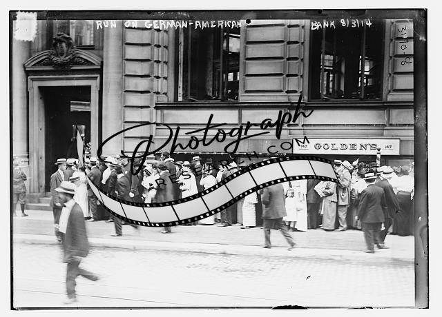Run on German American bank,August 3,1914,People crowded out front,Bain News