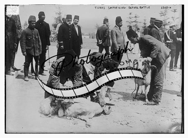 Turks sacrificing before battle,animals,goats?,men,Turkish,Bain News Service