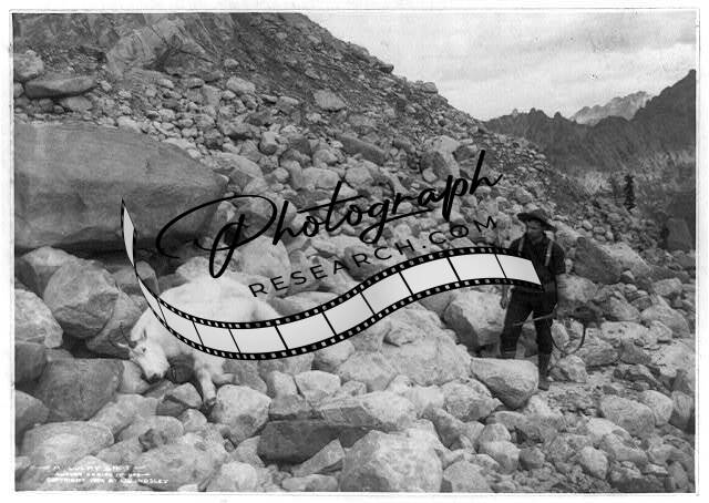 Lucky shot,mountain goat hunting,dead animals,game,hunter,rifle,rocks,c1907