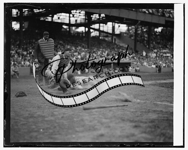 Yankees Lou Gehrig,Joe Harris,Hank Severeid of Senators,Baseball,Umpire Nallin
