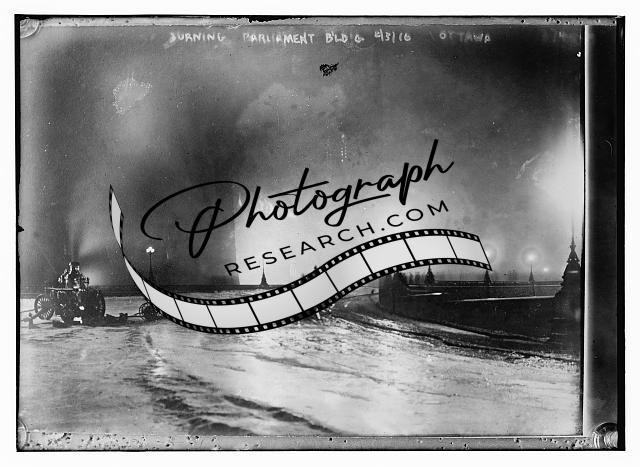 Burning Parliament Building,Ottawa,smoke,lights,hose,damage,Bain News Service