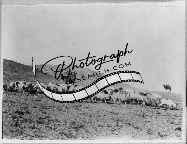 Mongolia. Shepherds on camels,watching over grazing sheep,1920-1930,Asia