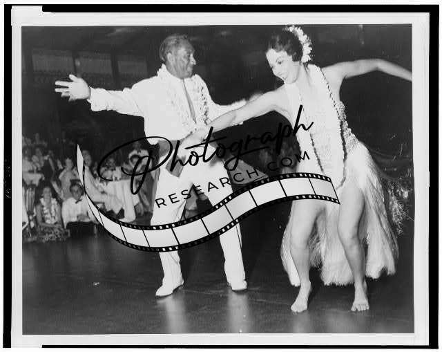 Duke Kahanamoku dancing with hula dancer Aggie Auld,1936,Olympic Swimmer
