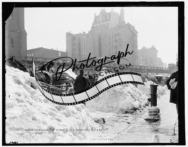 Cleaning,streets,snow removal,New York blizzard,NY,Detroit Publishing Co,1899