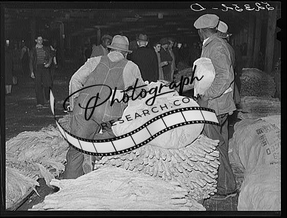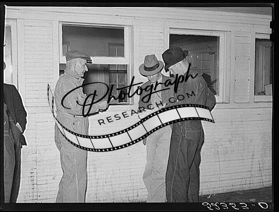 Title: Farmers waiting around at tobacco auction. Durham, North Carolina
