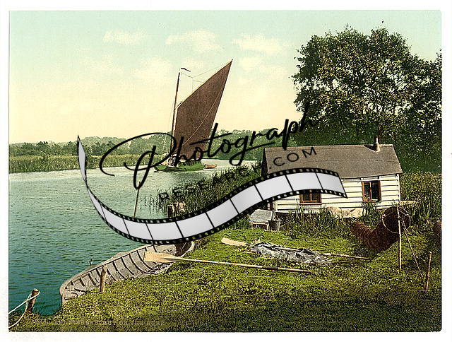 Eel fisher's hut on the Bore,(i.e.,Bure River) England,1890s