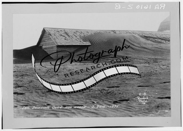 Soil drifting over hog house,South Dakota,SD,Farm Security Administration,FSA