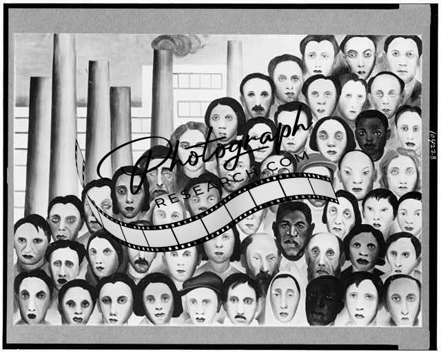 Operários,workers,painting,faces,men,women,ethnic groups,smoke stacks,1933