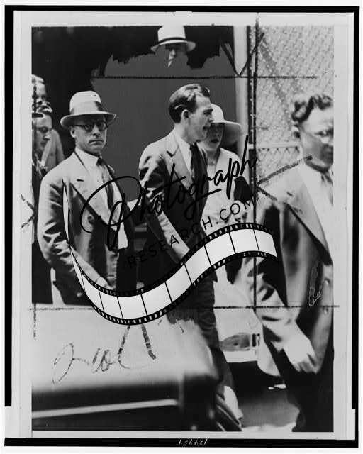 Dutch Schultz,emerging from doorway,Malone County Jail,1935,Trials,Criminal