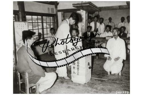 Korean Citizen drops vote in ballot box,election officials,Nae Chon,Korea,1948