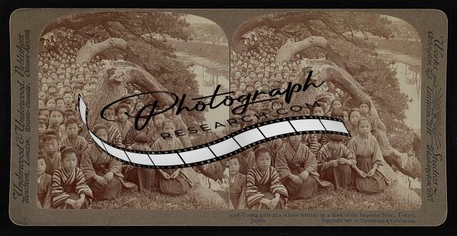 Young girls at a school festival on a bank of the Imperial Moat,Tokyo,Japan