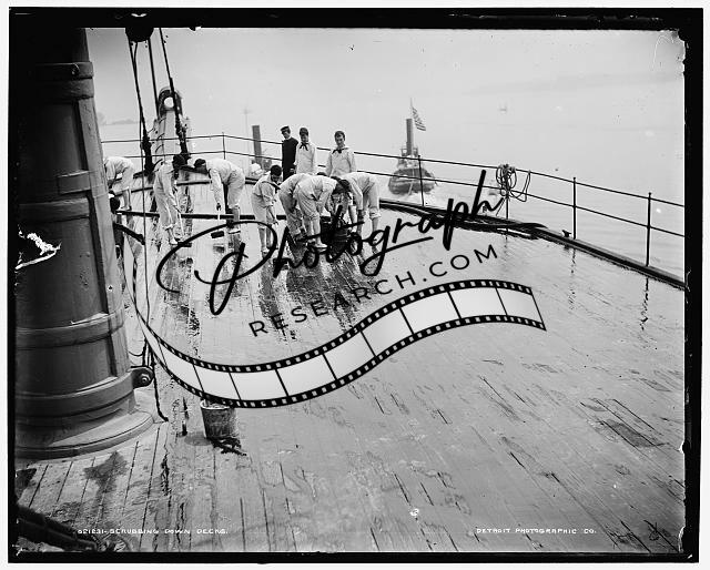 Scrubbing down decks,American,United States Navy,Detroit Publishing Company,1890