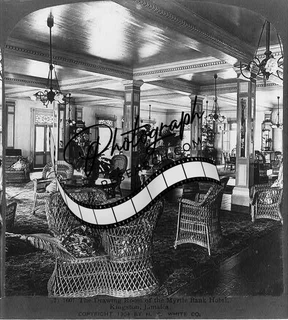 The drawing room of the Myrtle Bank Hotel,Kingston,Jamaica,c1904,wicker chairs