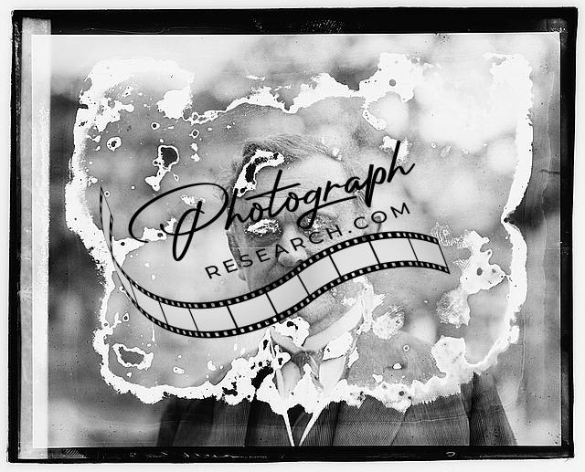 This glass negative might show streaks and other blemishes resulting from a natural deterioration in the original coatings.