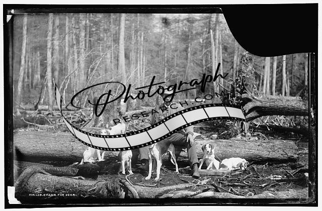 Eager,deer,hunting dogs,animals,pets,trees,Detroit Publishing Company,1880