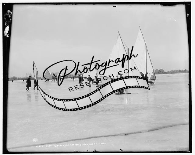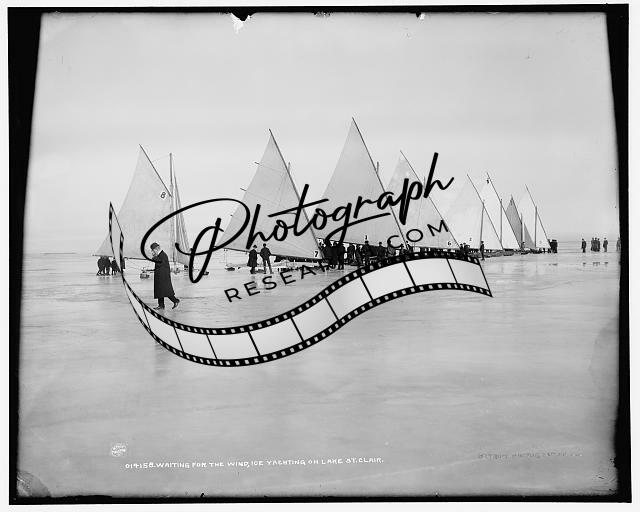 Waiting,wind,ice yachting,regattas,boats,sailing,Lake Saint Clair,Michigan,c1900