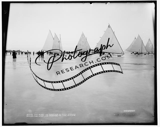 Start,ice yachting,regatta,Lake Saint Clair,Michigan,MI,Detroit Publishing,c1900