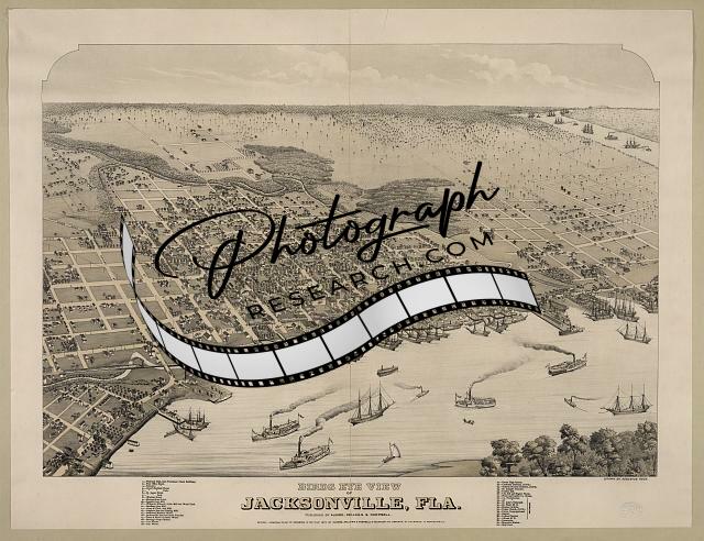 Bird's Eye View of Jacksonville,Florida,FL,c1876,Windsor Hotel,Brabury Saw Mill