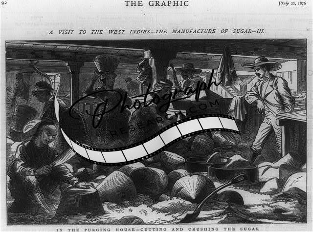 Visit,West Indies,manufacture,sugar,purging house,cutting,crushing,women,1876