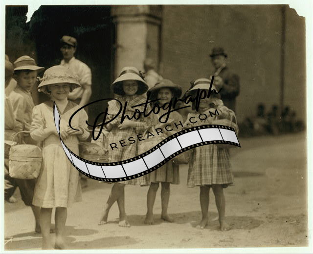 Title: 'Dinner-Toters' waiting for the gate to open. This is carried on more in Columbus than in any other city I know, and by smaller children. (See photos.) Many of them are paid by the week for doing it, and carry, sometimes, ren [i.e., ten] or more a day. They go around in th[e] mill, often help tend to machines, which often run at noon, and so learn the work. A teacher told me the mothers expect the children to learn this way, long before they are of proper age. (See also Vaughn's Georgia Report, April, 1913.) Eagle and Ph[o]enix Mill. Location: Columbus, Georgia.