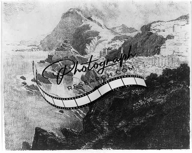 Ilfracombe,1897,Seascape & Town,Devonshire,England,Joseph Pennell