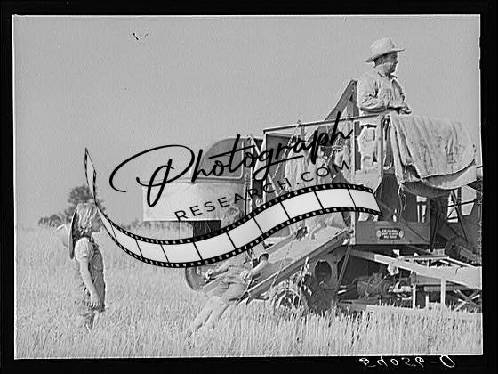 Title: Golus Skipper on the co-op association's binder while threshing Willy Anglin's oats. Transylvania Project, Louisiana