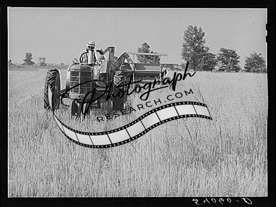 Title: Golus Skipper on the co-op association's binder while threshing Willy Anglin's oats. Transylvania Project, Louisiana