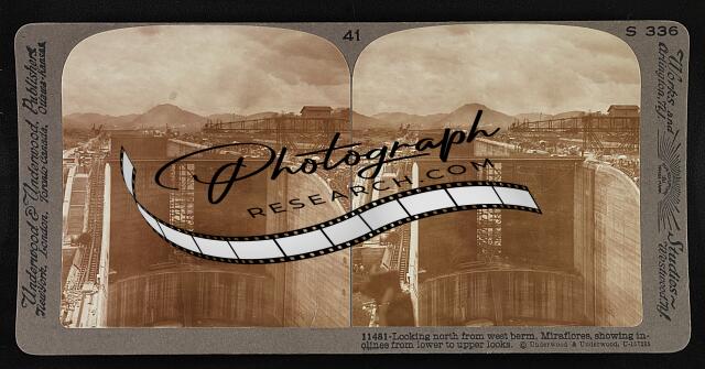 East chamber, lower locks, from construction trestle toward Panama, Miraflores
