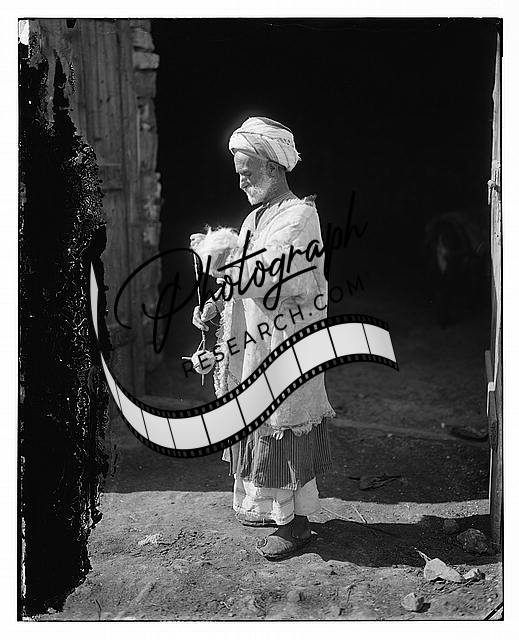 Ramallah peasant spinning wool,Ram Allah,West Bank,Middle East,American Colony