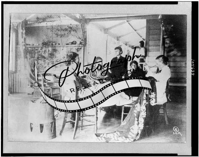 Robert Louis Stevenson,family sitting around table,home,Hawaiian Islands,c1921