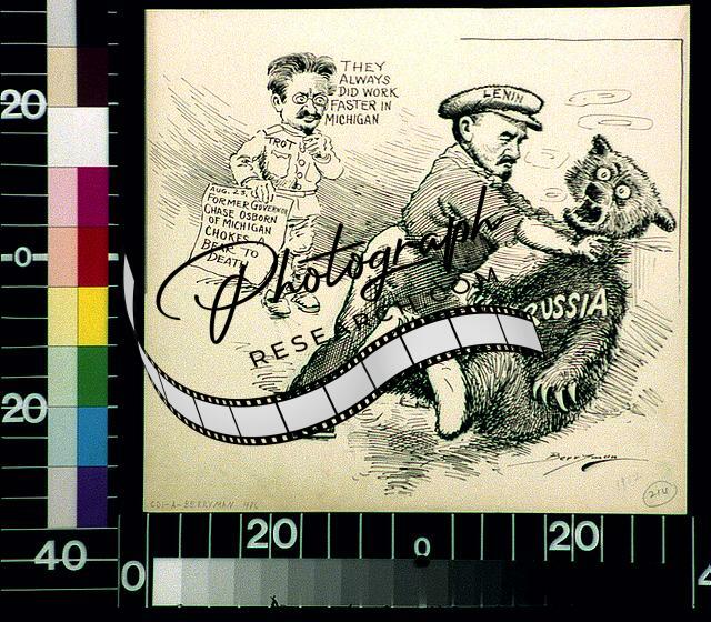 They always did work faster in Michigan,1922,Leon Trotsky,Vladimir Lenin,Cartoon