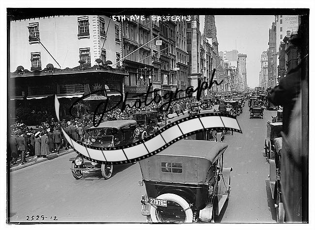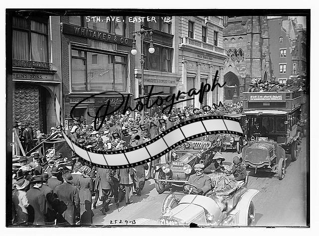 Summary: Photo shows Fifth Avenue, New York City on Easter day, March 23, 1913. The New York Public Library is on the left. ( 2008)