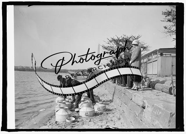 Fish Commissioner Henry O'Malley stocking Tidal Basin,Washington,DC,1925