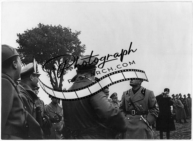 Göring and Mussolini at Wehrmacht maneuvers in Mecklenburg - Göring with back to camera, Mussolini with jaw protruding