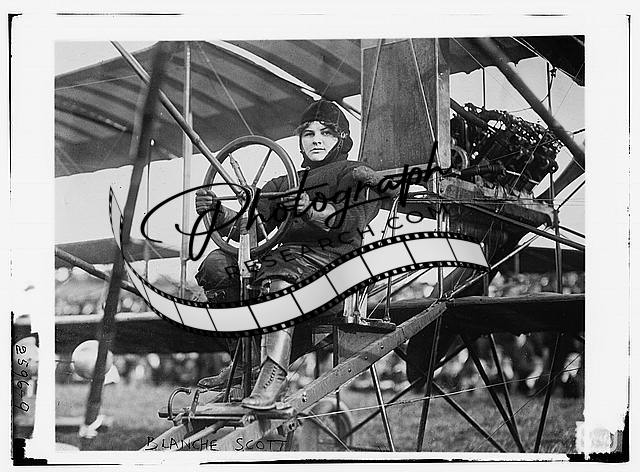 Blanche Stuart Scott,1885-1970,American aviator,seated in airplane,aviation