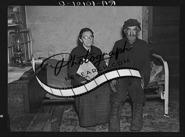 Title: Edgar Allen and his wife at the rear of house on farm near Milford, Iowa