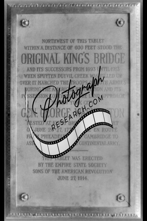 Historical marker near site of the original Kings' Bridge,New York City,NYC,1914