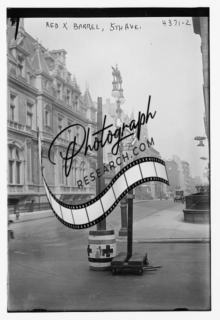 Red Cross Barrel,5th Avenue,street lamp,Bain News Service,automobile