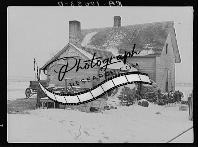 Title: House on fifty-seven acre farm rented by Edmond Williams. The house is banked with manure to keep out the cold. This is common practice in Iowa and the thickness of the manure bank is in direct proportion to the disrepair of the house. This is unusually thick. Tenant does not have to lease, but works on crop share plan. Iowa