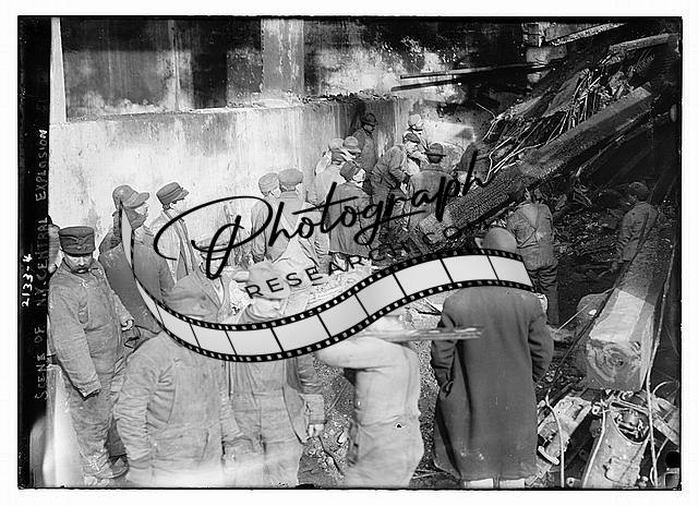 Scene of New York Central explosion,disaster,people,workers,overalls,Bain News