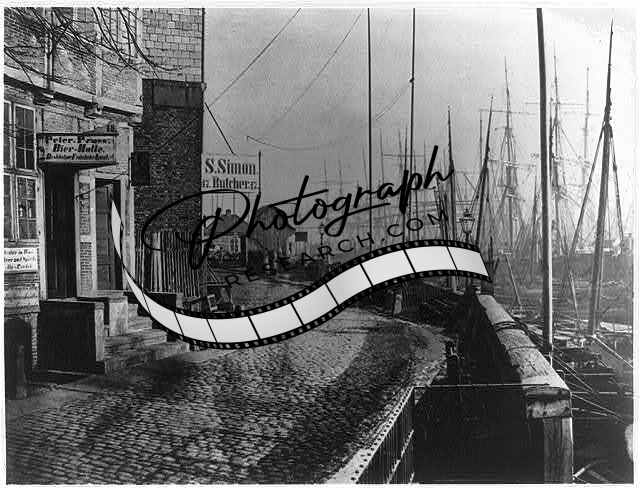 Strasse 'Beiden Vorsetzen',1864,street along waterfront,sailing ships,Germany