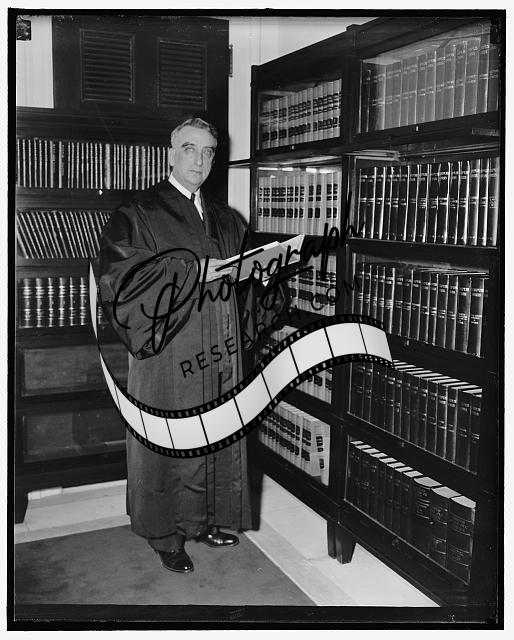 New Justice DC Court,Appeals,Fred M Vinson,robes after taking oath,books,1938