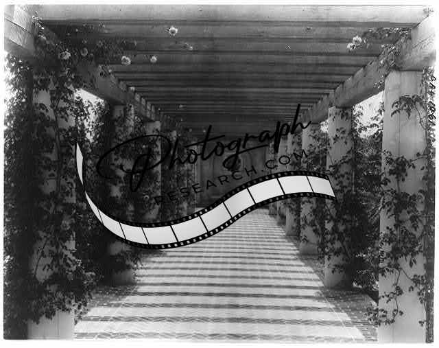 Coppell residence,Pasadena,California,CA,arbor,pillars,vines,flowers,garden