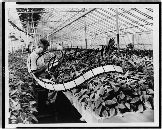 Chinchona seedlings being nurtured by botanist Charles Lloyd in a greenhouse